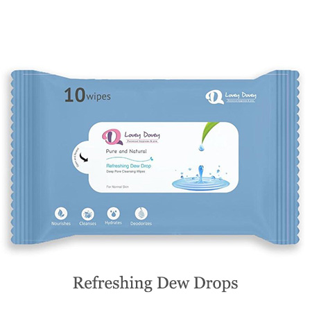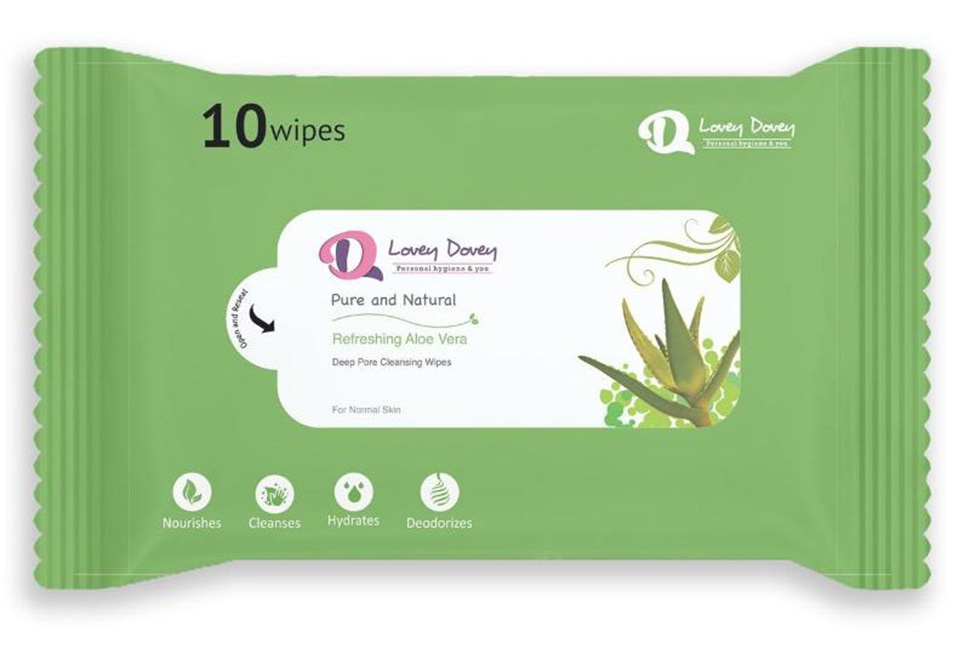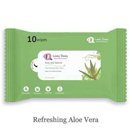 Our facial wipes, containing Aloe Vera extract, refresh you r face with their cooling and soothing properties. of Aloe Vera extract contained in them. These wipes assure ensure a completely hygienic and effective cleansing of the your facial skin to remove dirt, excess oil and grime from the face and neck areas. Aloe Vera also works as a nourishes the skin nourisher and leaves a mild fragrance after use.