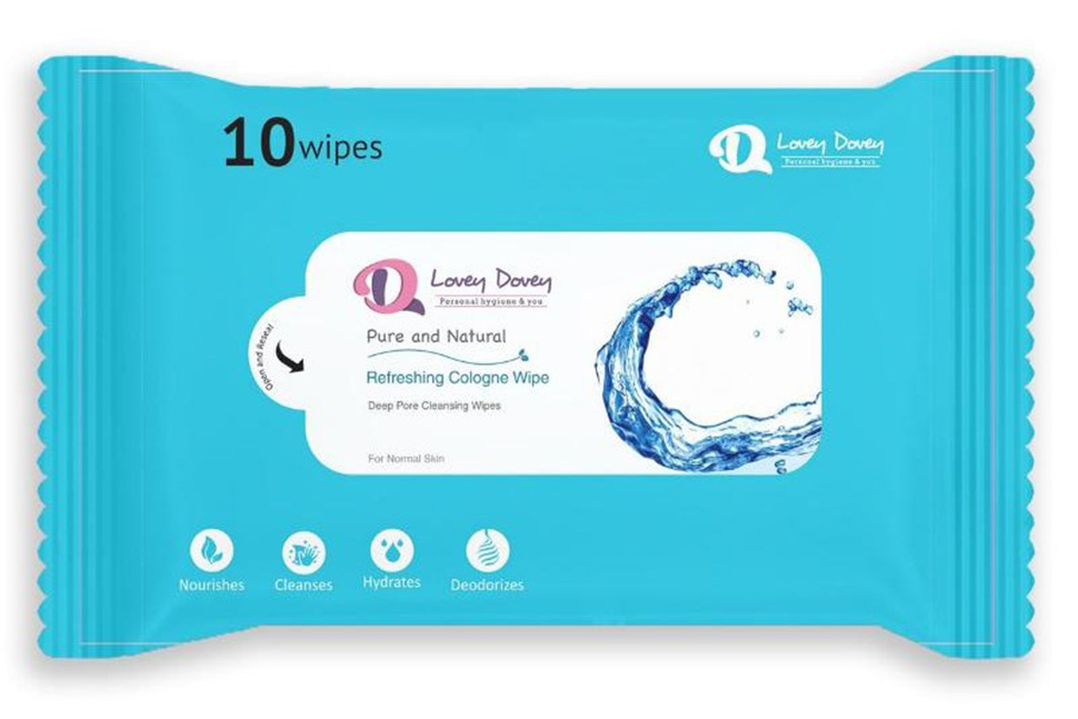 The towelettes are to be taken one at a time, each area of the body is to be cleaned using with a separate towelette after which it should be discarded and a fresh one should be used. The product pack can be warmed in the unopened condition in a microwave oven during cold weather and can be used straight from the pack on warm days. The gentle cleansing formula employed in the towelettes cleanses and at the same time moisturizes the skin. The skin dries up quickly after cleansing and, therefore, there is no need to use any other towel for drying the skin.